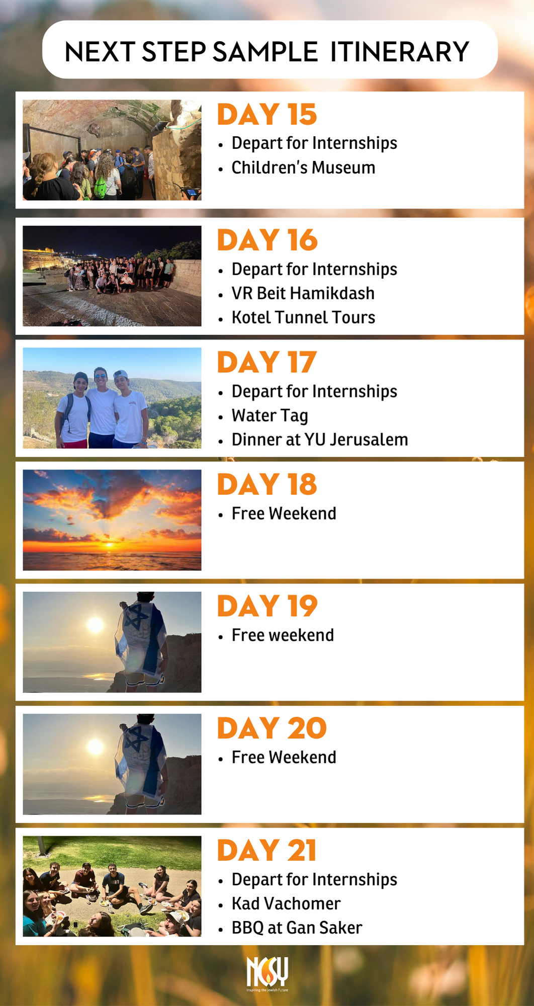 3 NCSY Staff September 19, 2023 Next Step Shabbat Shalom from Jerusalem: Internships, Growth, and Inspiration July 18, 2025 Read the full post Next Step Best. Summer. Ever. November 1, 2016 Read the full post Next Step Hello world! August 14, 2016 Read the full post